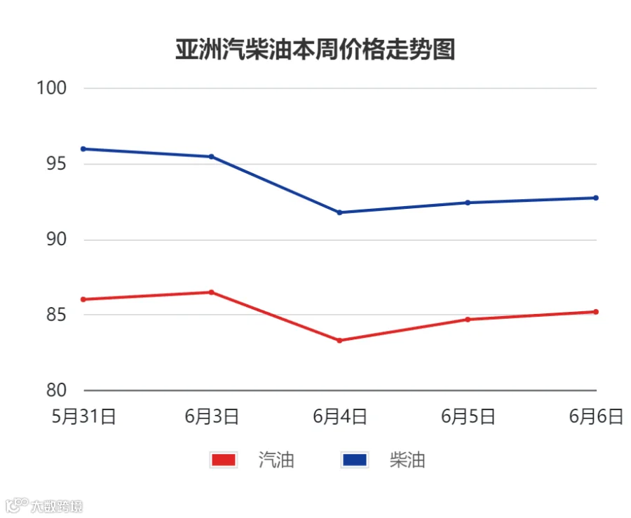汽油方面,因美洲地区汽油需求低迷,亚洲到美国套利窗口仍关闭,加之中东汽油套利船货流入新加坡,多重利空因素施压亚洲汽油市场;但部分炼油厂减产,导致汽油供应收紧,因此本周期亚洲汽油价格仅小幅下行。