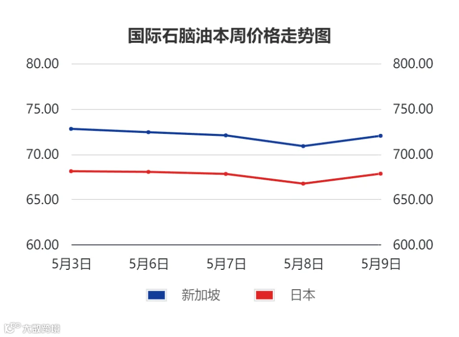 柴油方面,因欧洲市场疲软,中东和印度船货流向东亚地区,且东西方套利窗口维持关闭状态,拉低亚洲柴油市场价格;但终端对6月船单的采购需求支撑行情上涨,且亚洲商家致力于将船货销往欧洲和澳大利亚;本周期亚洲柴油行情震荡上涨。