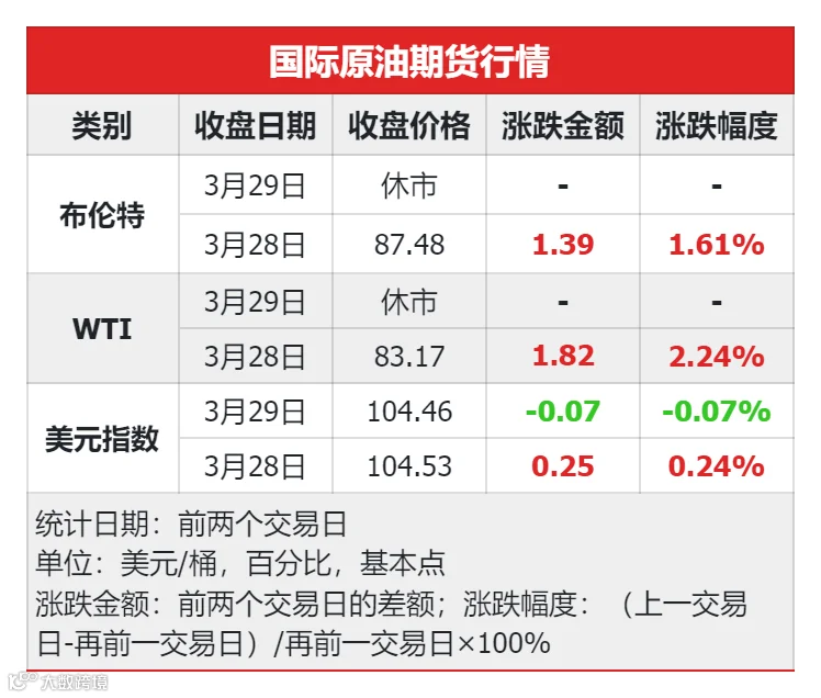 3月29日(上周五),欧美原油因宗教节日休市,无收盘价。