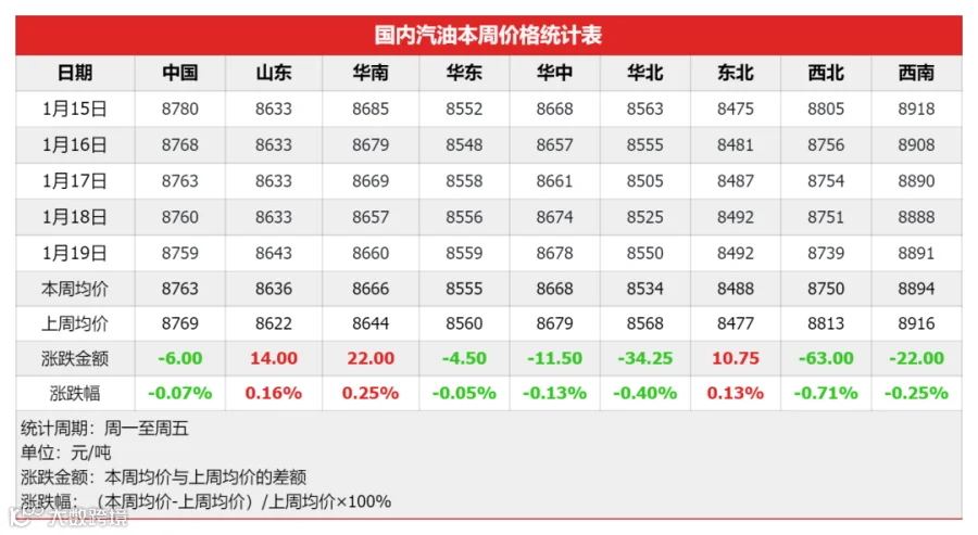 周内,原油成本端宽幅震荡,加剧业者观望情绪;叠加主营销售压力逐渐增加,汽柴价格推涨动力不足;供应面,原料陆续到位,炼厂开工率走高,资源供应充裕;需求面,汽油刚需仍存,一定程度上支撑汽油价格,但正因价格高位,春节囤货周期尚未开启,汽油需求预期向好;而柴油正值传统消费淡季,业者入市操作积极性欠佳;整体来看,终端需求表现不一,汽油行情坚挺,柴油走势偏弱。