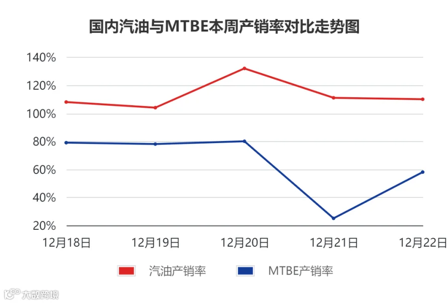 本周期MTBE周产量约20.56万吨,相较上一周期下降;山东MTBE装置开工率约61.54% ,故本周期产能相较于上一周期有所下降。