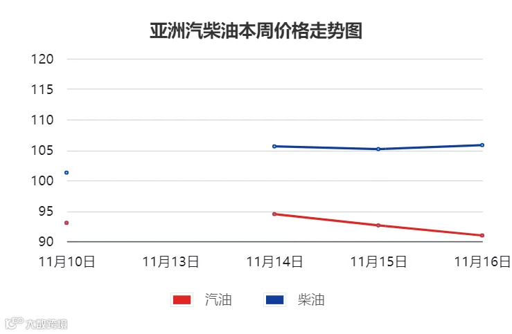 本周期,亚洲成品油行情:汽油窄幅波动,柴油弱势运行。