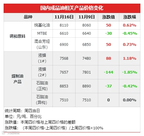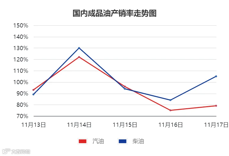 截至11月16日,社会单位的柴油库容率29.77%,环比上周期下跌0.15%;山东地炼汽油库容率为24.88%,环比上周期减少1.56%,柴油库容率25.47%,环比上周减少0.76%。