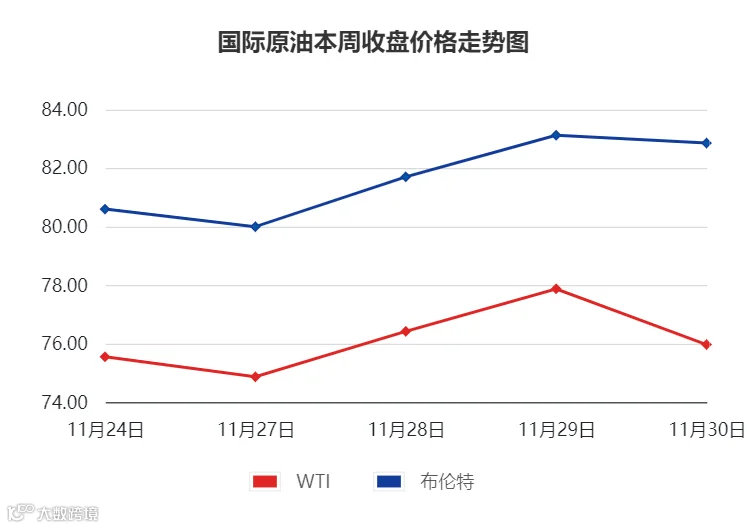 WTI周均价76.13美元/桶,环比下跌1.25%;布伦特周均价81.63美元/桶,环比下跌0.14%。