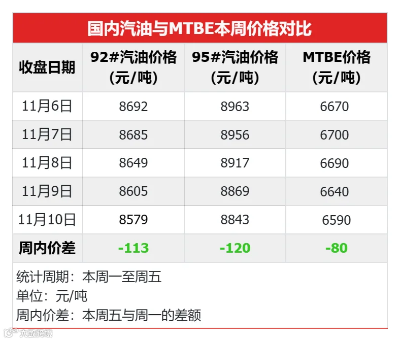 点击下方视频,1分钟了解本周MTBE