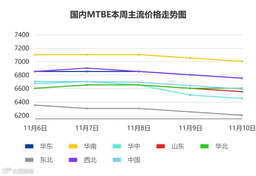 本周国内MTBE市场均价约6675元/吨,相较于上一周期下跌139元,跌幅2.04%。