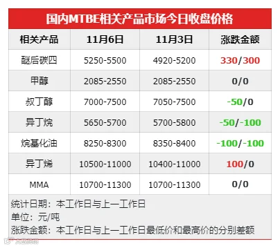 其余相关产品:叔丁醇、异丁烷市场小幅走跌,异丁烯市场止跌反弹,MMA行情回稳。