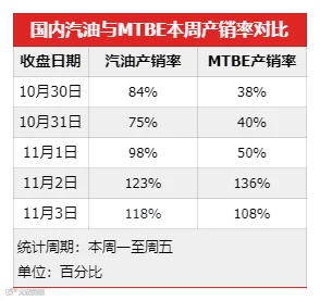 周一,原油大幅走跌,消息面利空MTBE市场,厂家出货受阻,价格持续下跌,周中,原油仍震荡走跌,下游入市心态谨慎,成交提量不易,且汽油需求表现仍偏弱,MTBE价格偏弱运行,产销率前三天均未过百,周四,有入市抄底,产销率136%,周五,原油止跌回弹提振,厂家出货顺畅,产销率达108%。