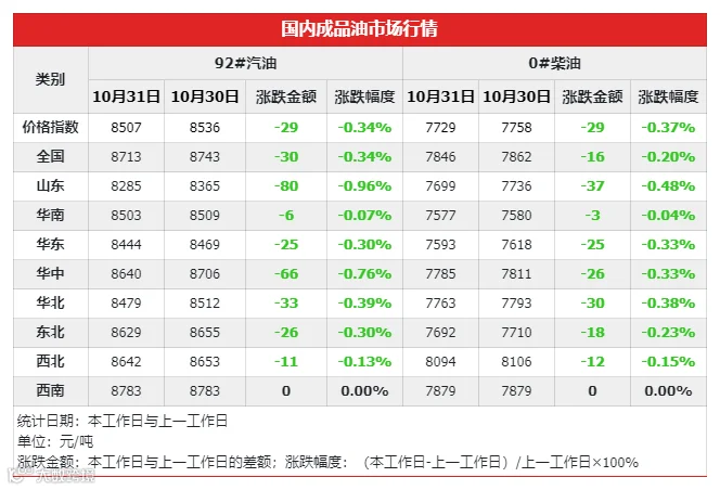 主营方面,昨天10月最后一天,各单位结算停销,进入11月,今天主营单位汽柴报价或回稳观望。