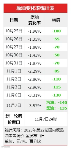 零售调价方面,今天是第十个工作日,参考原油品种的均价为84.92美元/桶,变化率-3.57%,对应国内汽柴油零售价分别下调140和135元/吨,本轮调价窗口是今晚24点。