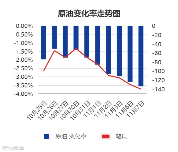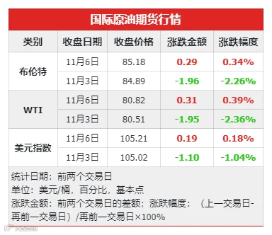 11月6日(周一),布伦特、WTI均小幅收涨。