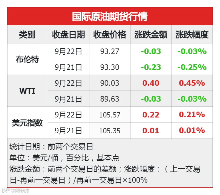 9月22日(上周五),WTI小幅上涨,但布伦特连续4个交易日小幅收跌。