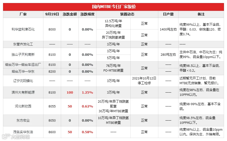 MTBE报价 | 今日MTBE市场稳中偏强,南方地区部分高价成交受阻,业者仍存谨慎心态