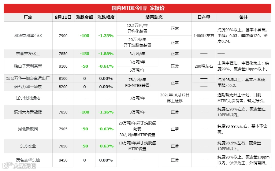 吉牛MTBE早报(20230911)