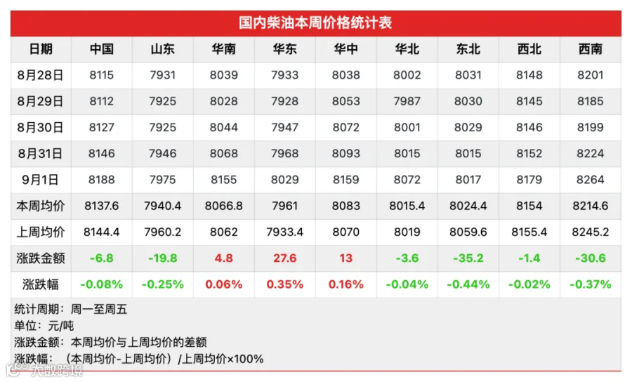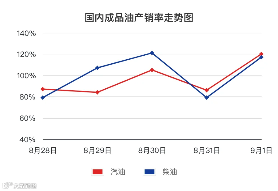 截至8月31日,社会单位的柴油库容率为32.54%,环比上周期上升0.18%;山东地炼柴油库容率为24.29%,环比上周期增加0.75%,汽油库容率19.33%,环比上周减少0.71%。