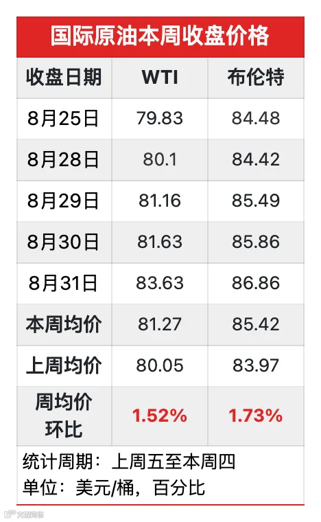 上周五至本周四,国际原油持续小幅上行,周均价环比上涨。