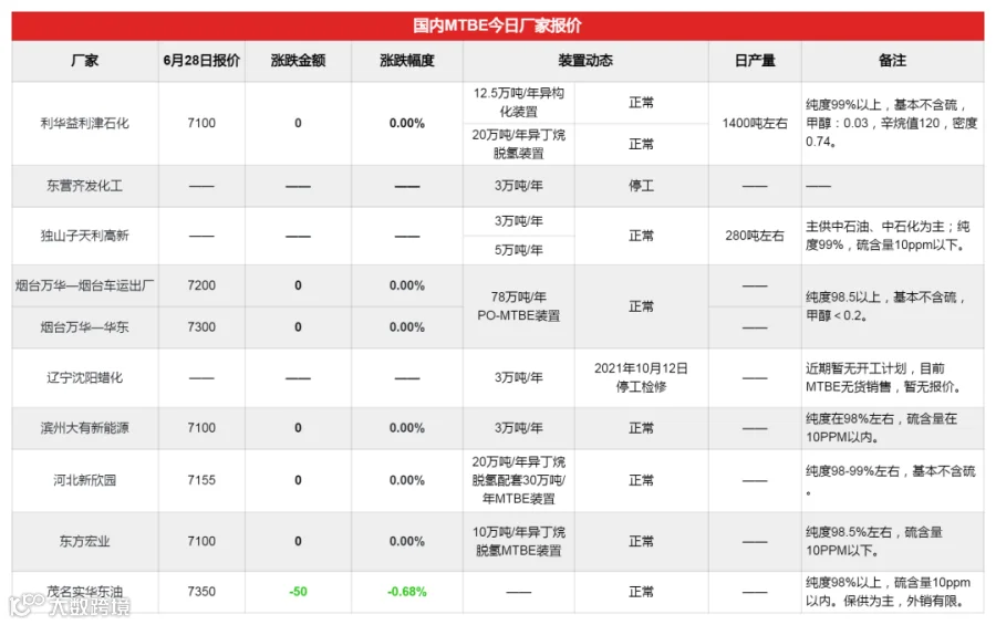 吉牛MTBE早报(20230628)