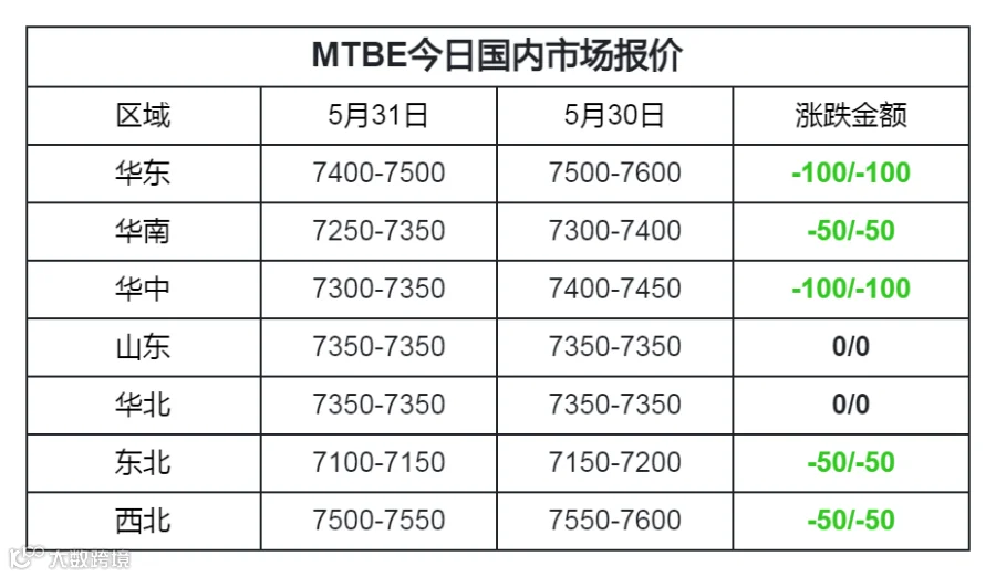 由于昨日MTBE出货情况较好,今日厂家库存压力不大,山东、华北地区报价多延续平稳,下游入市适度补货,但东北、华东、华南、华中、西北地区走货压力仍存,下游零星刚需补货,厂家以让利走量为主,下调幅度50-100元/吨,整体成交氛围平平。
