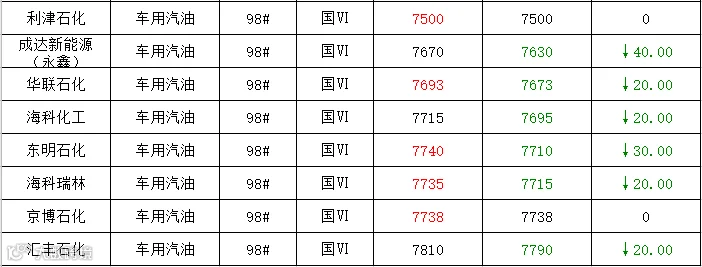 吉牛8月27日炼厂汽油报价
