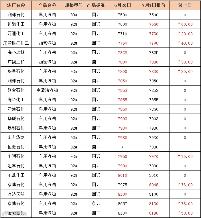 导读:吉牛7月1日炼厂汽油报价吉牛7月1日炼厂柴油报价吉牛7月1日两大报价吉牛7月1日异辛烷报价吉牛7月1日MTB