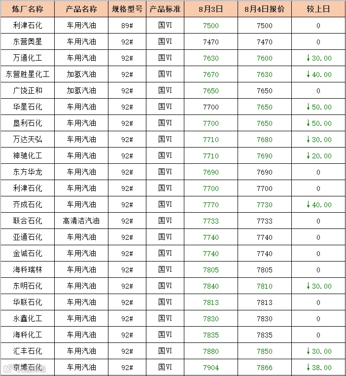 导读:吉牛8月4日炼厂汽油报价吉牛8月4日炼厂柴油报价吉牛8月4日两大报价吉牛8月4日异辛烷报价吉牛8月4日MTB