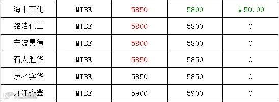 吉牛2021年9月7日地方炼厂,两大集团,MTBE报价