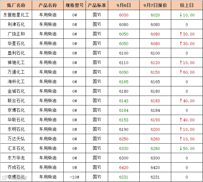 吉牛9月7日炼厂柴油报价