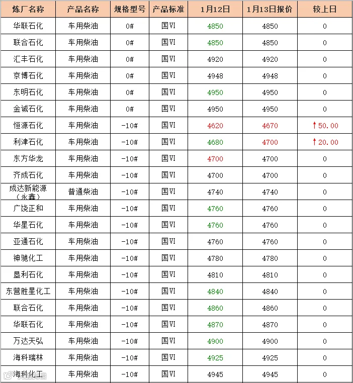 导读:吉牛1月13日炼厂汽油报价吉牛1月13日炼厂柴油报价吉牛1月13日两大集团报价吉牛1月13日MTBE报价吉牛