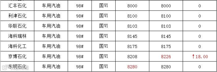 吉牛6月21日炼厂汽油报价