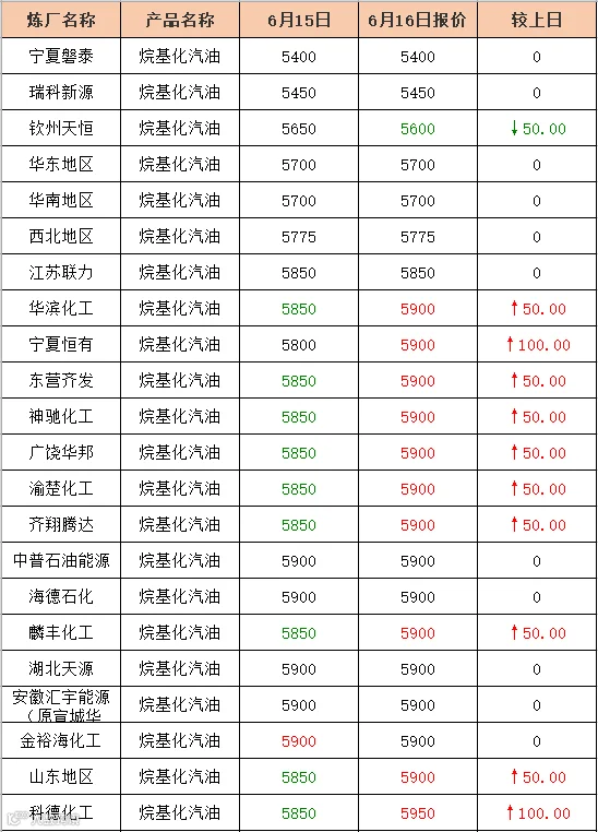 导读:吉牛6月16日炼厂汽油报价吉牛6月16日炼厂柴油报价吉牛6月16日两大报价吉牛6月16日异辛烷报价注:标红为