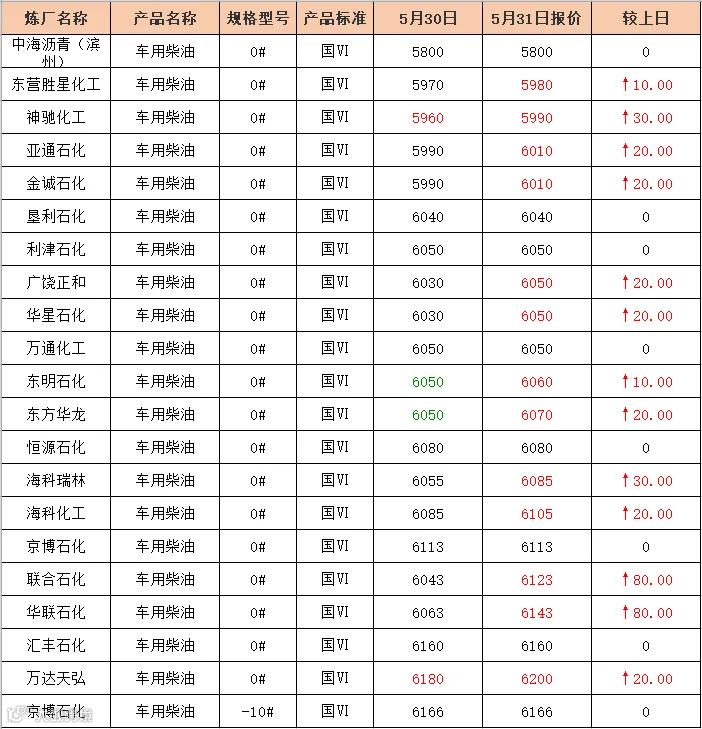 导读:吉牛5月31日炼厂汽油报价吉牛5月31日炼厂柴油报价吉牛5月31日两大报价吉牛5月31日异辛烷报价注:标红为