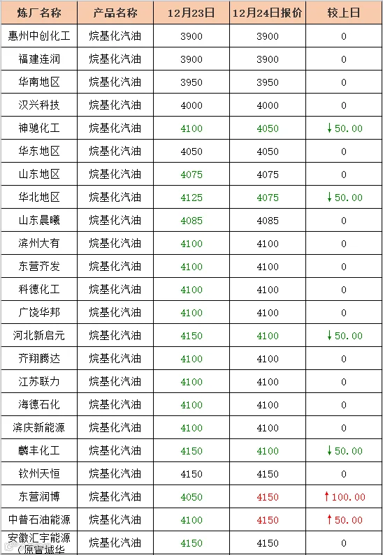 导读:吉牛12月24日炼厂汽油报价吉牛12月24日炼厂柴油报价吉牛12月24日两大集团报价吉牛12月24日MTBE