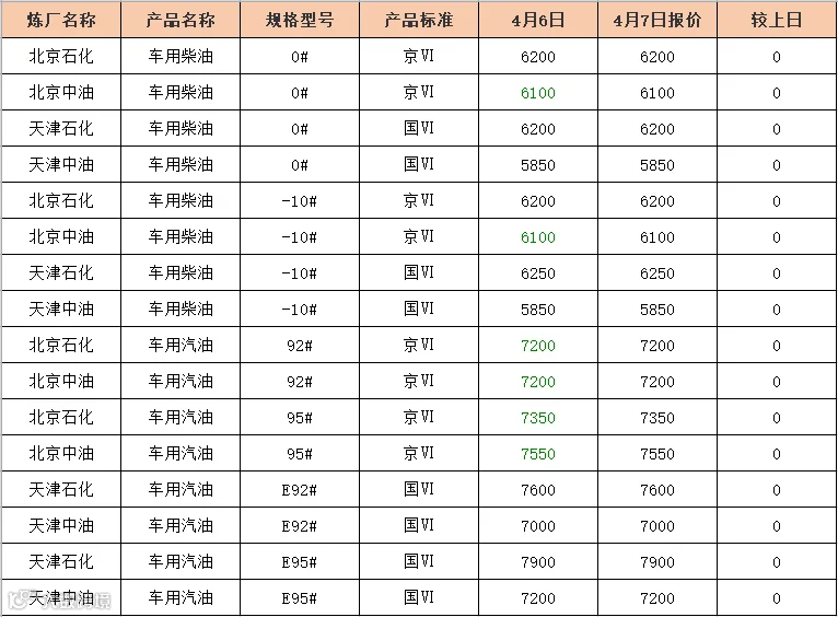 吉牛4月7日炼厂柴油报价