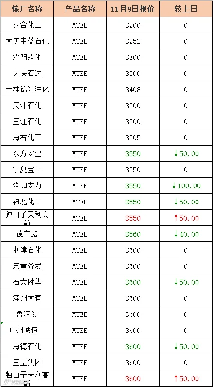 吉牛11月9日MTBE报价