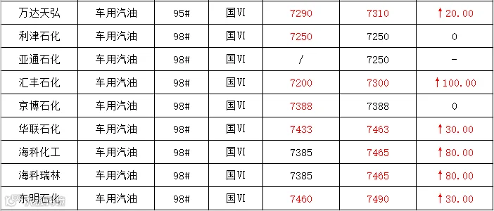 吉牛3月9日炼厂汽油报价