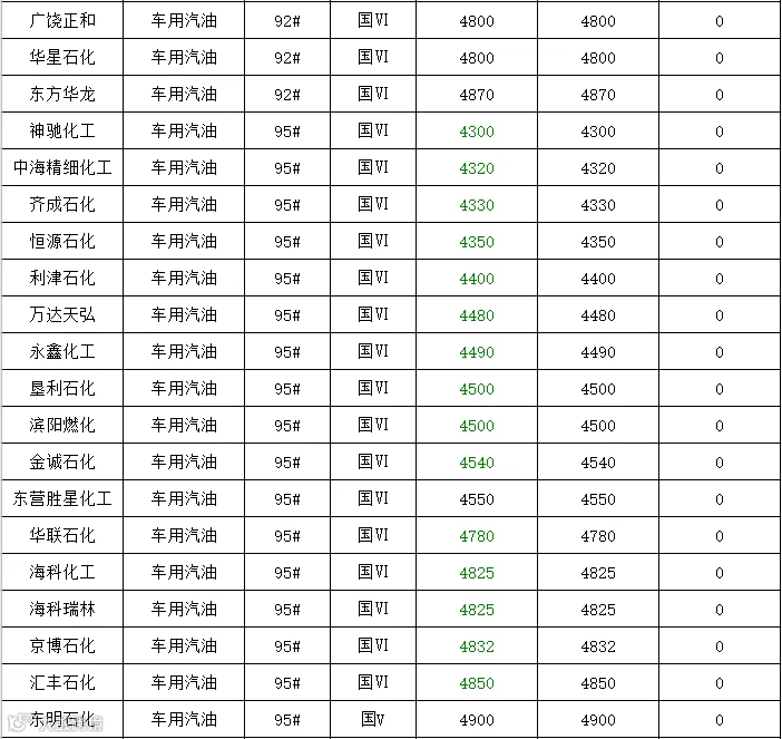 吉牛5月9日炼厂汽油报价