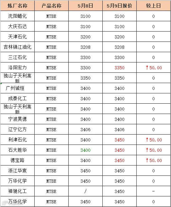 吉牛5月9日MTBE报价