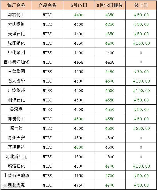 吉牛6月18日MTBE报价