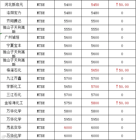 吉牛2019年11月14日地方炼厂,两大集团,MTBE报价
