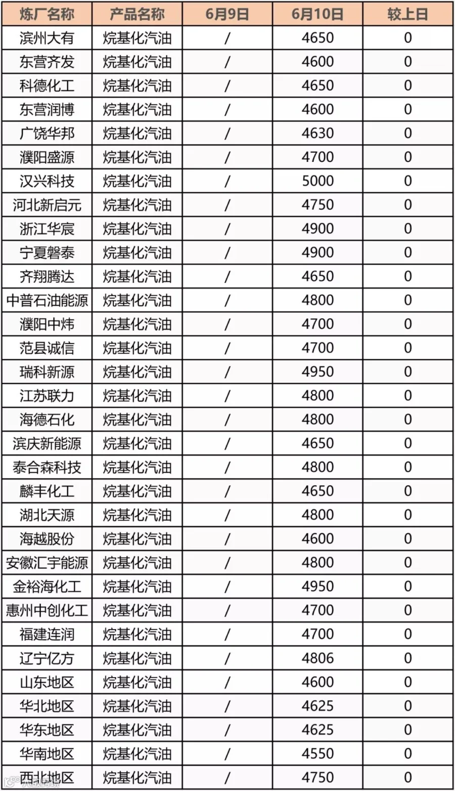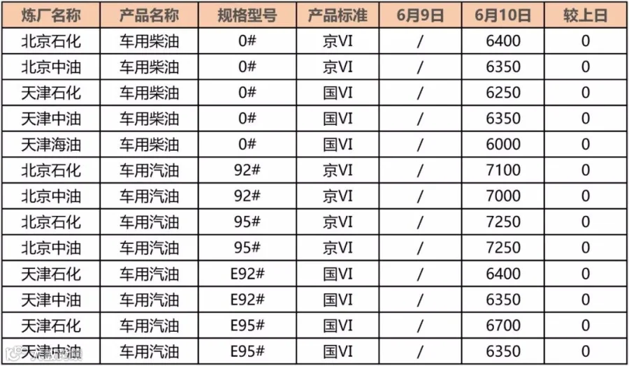 吉牛6月10日地方炼厂汽油报价
