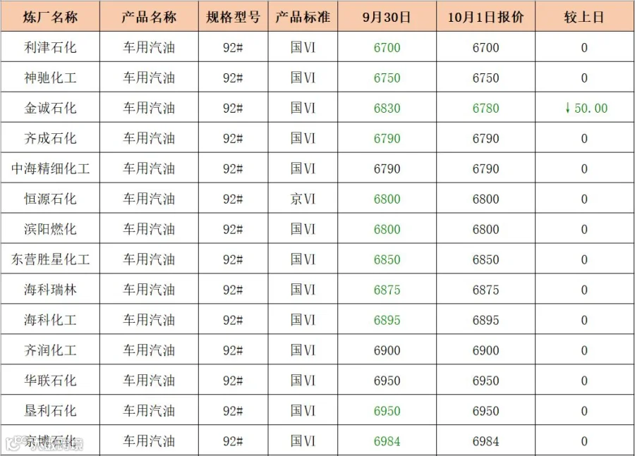 导读:吉牛10月1日炼厂汽油报价吉牛10月1日炼厂柴油报价注:标红为前期上涨,标绿为前期下调。