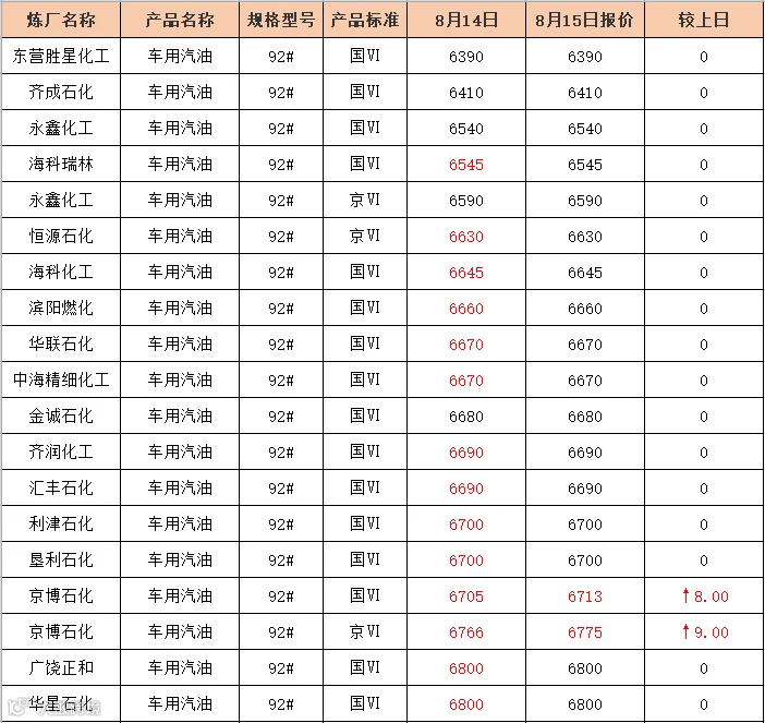 导读:吉牛8月15日炼厂汽油报价吉牛8月15日炼厂柴油报价吉牛8月15日两大报价吉牛8月15日MTBE报价吉牛8月
