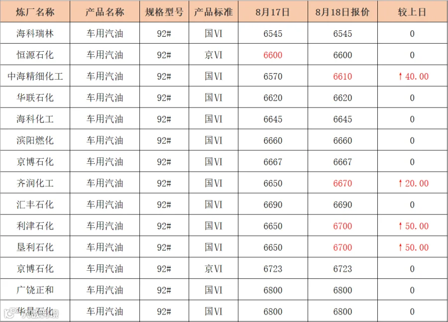 导读:吉牛8月18日炼厂汽油报价吉牛8月18日炼厂汽油报价注:标红为前期上涨,标绿为前期下调。