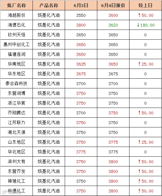 导读:吉牛6月4日炼厂汽油报价吉牛6月4日炼厂柴油报价吉牛6月4日两大报价吉牛6月4日MTBE报价吉牛6月4日异辛