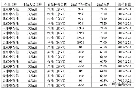 吉牛2019年2月24日MTBE、异辛烷、地方炼厂、两大集团报价