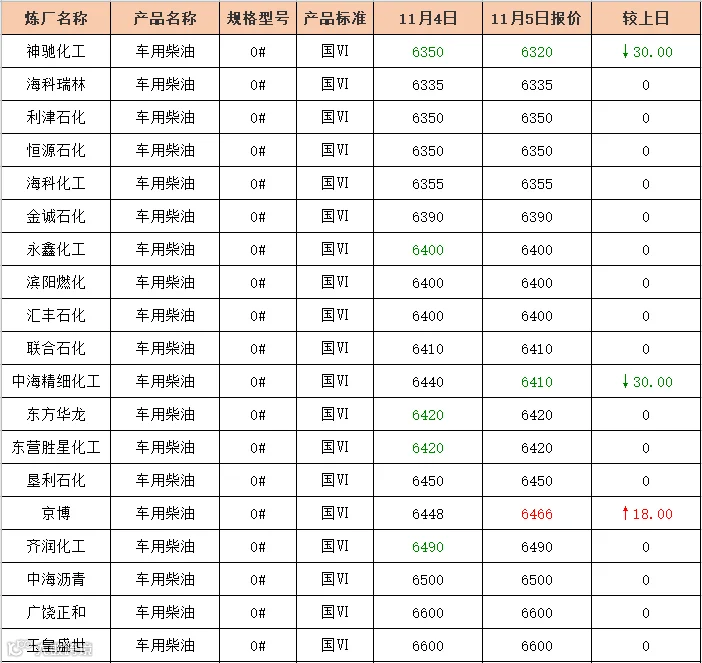 吉牛11月5日炼厂柴油报价