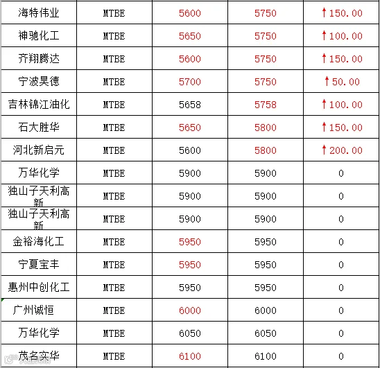 吉牛2019年7月31日地方炼厂,两大集团,MTBE,异辛烷报价