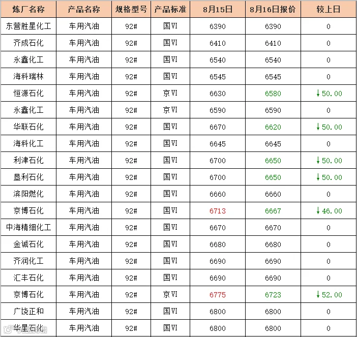导读:吉牛8月16日炼厂汽油报价吉牛8月16日炼厂柴油报价吉牛8月16日两大报价吉牛8月16日MTBE报价吉牛8月