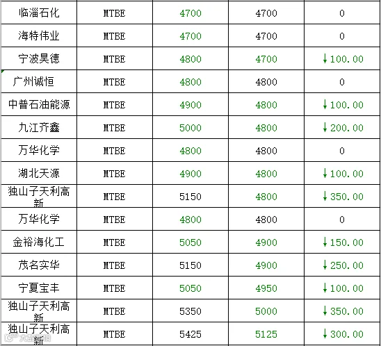 吉牛2019年6月4日地方炼厂,两大集团,MTBE,异辛烷报价