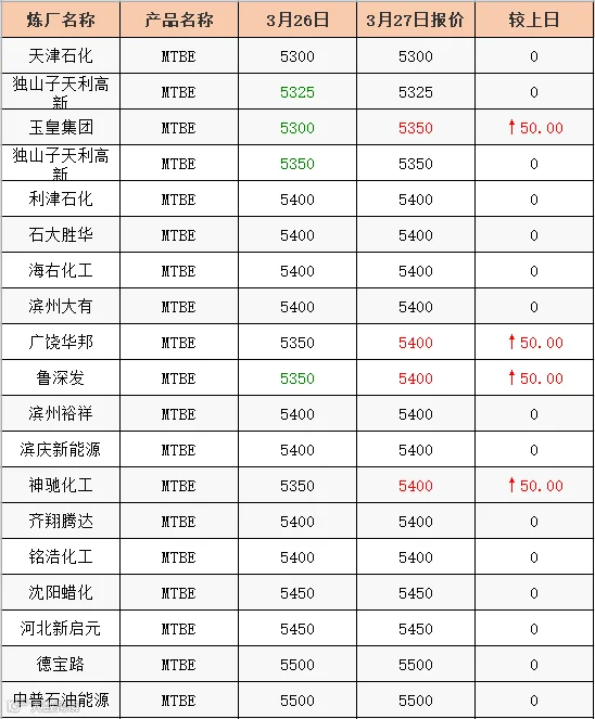 吉牛3月27日MTBE报价